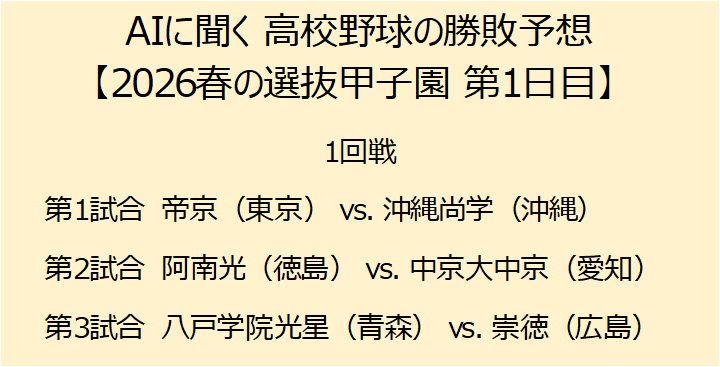 AI予想:八戸学院光星(青森) vs. 崇徳(広島)