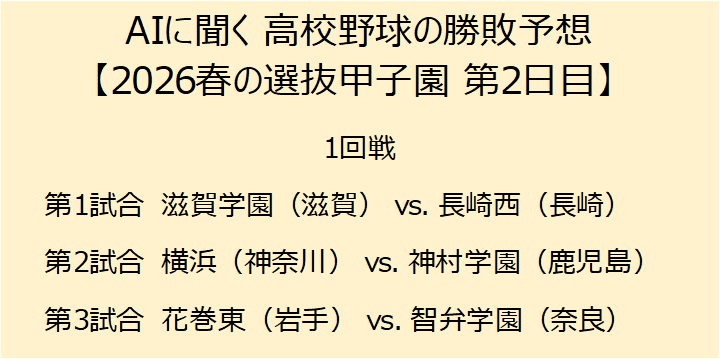 AI予想:滋賀学園(滋賀) vs. 長崎西(長崎)