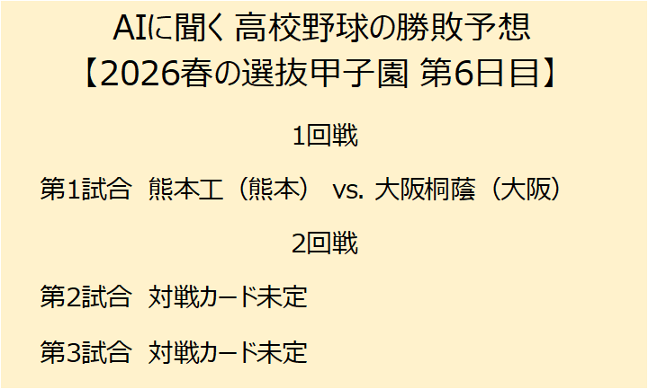 AIに聞く高校野球の勝敗予想 【2026春センバツ甲子園第6日目(3/24)】